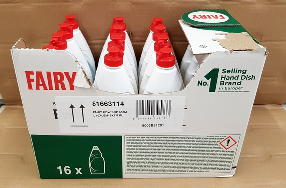 Box ean 8001090395733 Fairy Lemon 650 ml ean 4015400958550 (PL, LV, LT, EE) Fairy Sensitive 650 ml ean 4015400958598 (PL, LV, LT, EE)